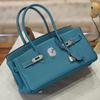 Neue lange Tragetasche Verschluss Silberschnalle Oberleder Rindsleder Mode Ein-Schulter-Handtasche Schloss Schnalle Leder Damen Tasche Handtasche