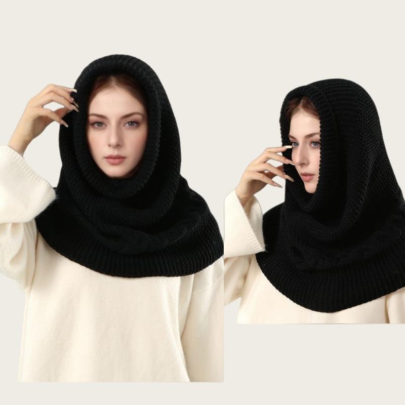 Vielseitiger Gestrickter Schal mit Kapuze Wintermütze Nackenschutz Schal Kreis Kragen Schals Einfarbige Doppeltverwendung Schal Schal Oberbekleidung Dekor