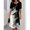Women's Summer Dress 3D Printed T Shirt Dress Short Sleeve Casual Loose Beachwear Oversized Vacation Clothing with Round Neck