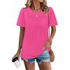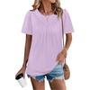 Damen Casual Mode Rundhals Einfarbig Plissiert Kurzarm T-Shirt Top