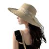 Breathable Wide Brim Sun Hat Large Brim Sunshade Cap Vacation Lace Bowknot Straw Hat Woman