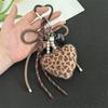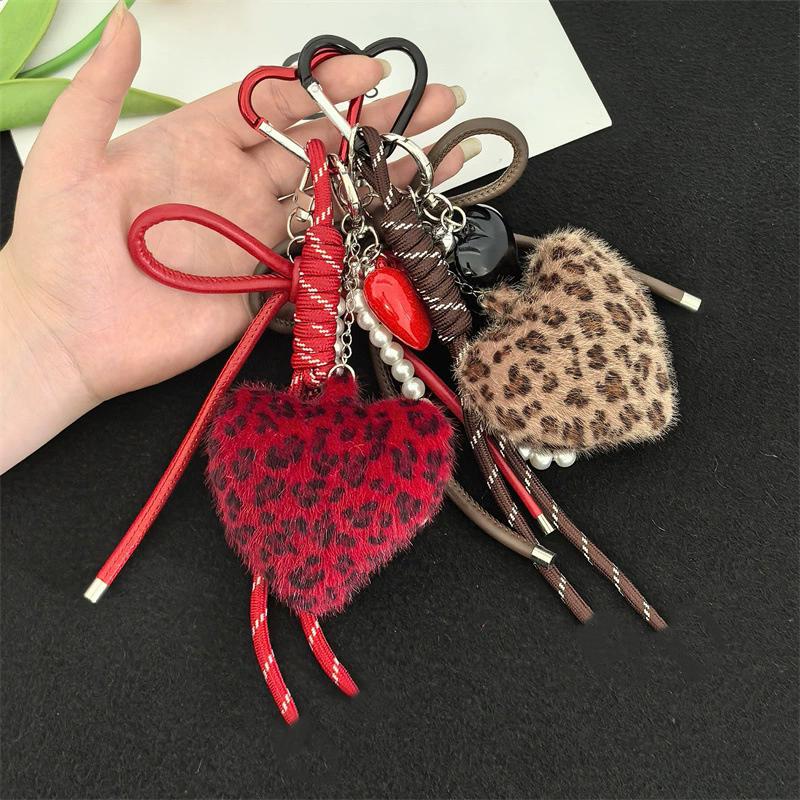 Niedlicher, handgefertigter Schlüsselanhänger mit Leopardenmuster aus gewebtem Seil und Fellbommel – Liebesmotiv