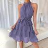 Damen Casual Fashion Sexy Einfarbig Gürtel Bequem Und Cool Rundhals Kleid
