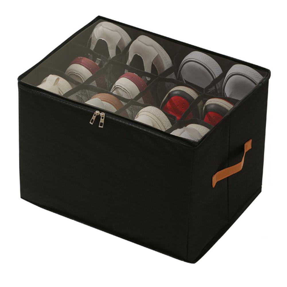 Foldable Shoe Storage Box with 16 Adjustable Dividers Fabric Material for Customizable Shoe Storage and Space Saving
