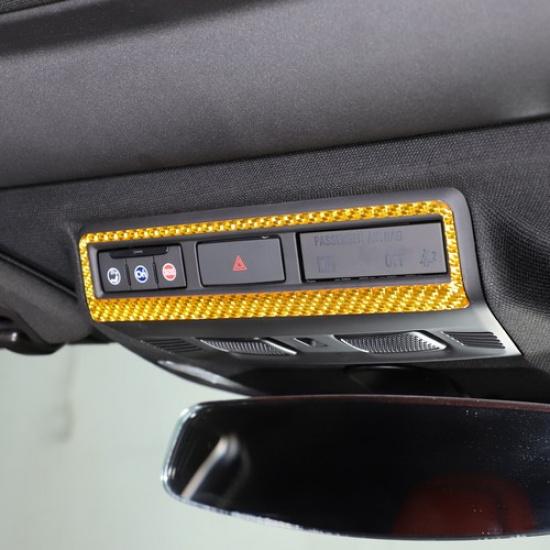 Gelber Kohlefaser-Warnlichtschalter-Rahmen-Aufkleber für Corvette C8 -25