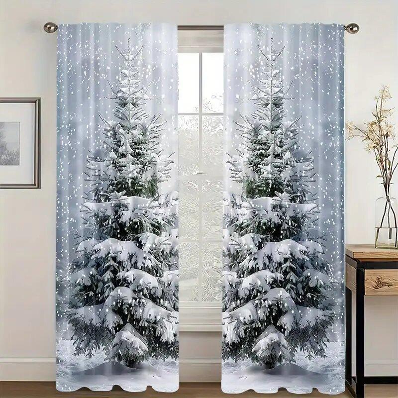 Christmas tree printed curtains, pole bag curtains, bedroom and living room decoration, home decoration, Christmas decoration