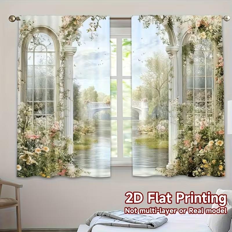 2 Stück Palastbogen Blumen Druck Vorhänge, geeignet für Schlafzimmer, Wohnzimmer, Heimdekoration, Wohnzimmer Vorhang Set Fenstervorhang
