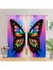 2 Stück Bunte Vorhänge mit floralem Schmetterlingsdruck, Entworfen zur Lichtfilterung, Hochwertiges Material, Ideal für Boho Heimfensterdeko