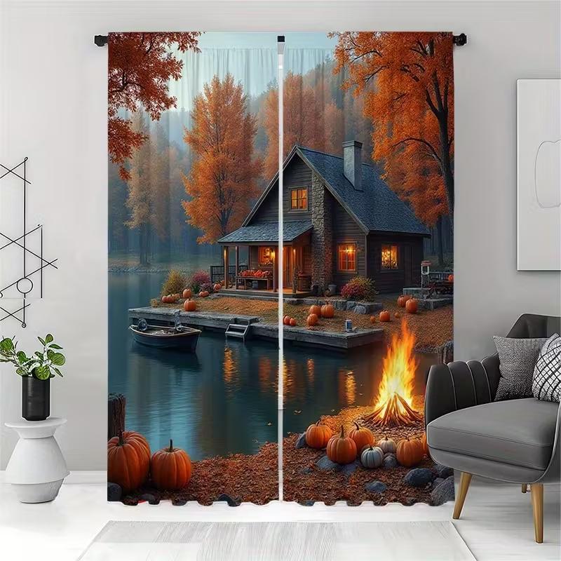 2 Stück Vorhänge mit Seelandschaftsdruck, geeignet für Schlafzimmer-, Wohnzimmer-, Küchendekoration, Heimdekoration, Fensterdekoration