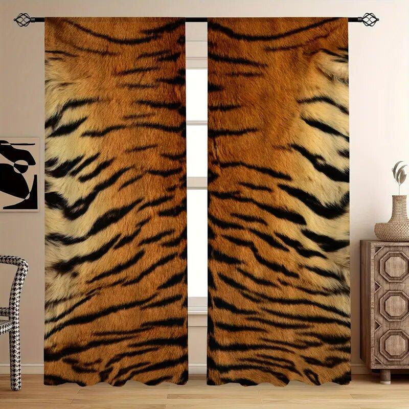 Vorhänge mit Tigerfell-Print, Stangentaschen-Vorhänge, 42*84, Schlafzimmer und Wohnzimmer, Heimdekoration, Raumdekoration
