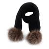 Babymütze und Schal-Set mit künstlichen Waschbärfellbommeln, warm gestrickt für den Winter, für Babys und Kleinkinder von 6-36 Monaten