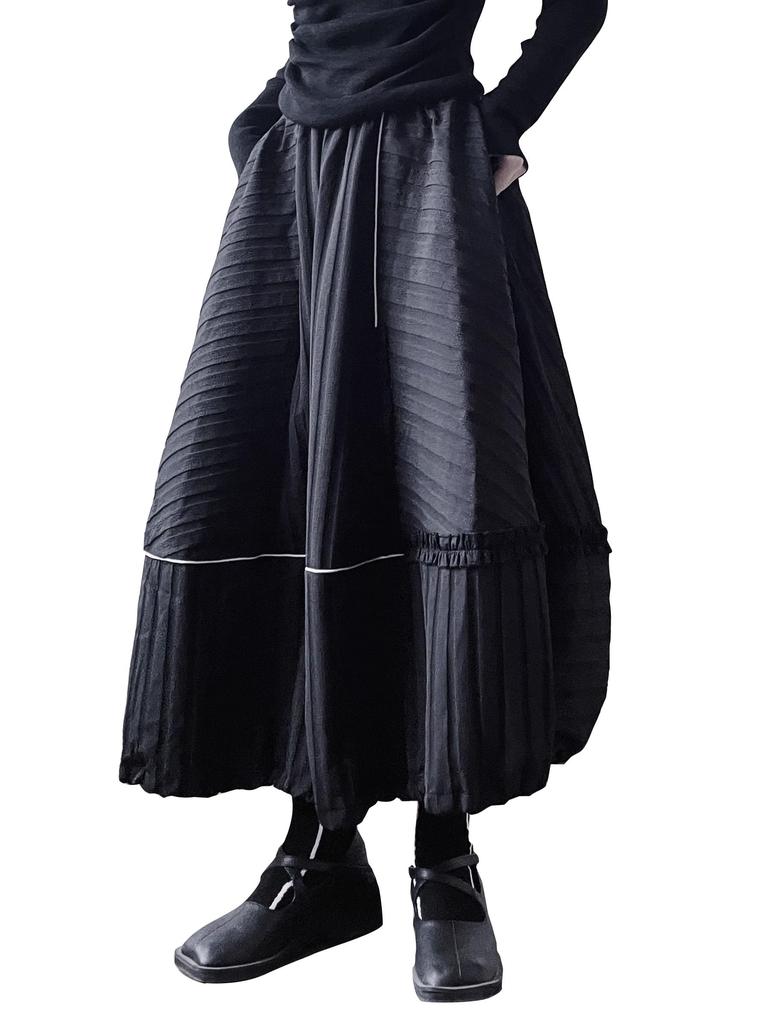 SHUMING✿ This long skirt features a monotone black balloon design for a fashionable look. This maxi skirt is perfect for adults, creating a sophisticated look with its trendy balloon skirt design. Its soft, airy silhouette makes it a perfect addition to any outfit, creating a sophisticated, high-end look. It's a beautifully flared long skirt that's perfect for anyone, from teenagers to those in their 20s, 30s, 40s, 50s, and 60s.