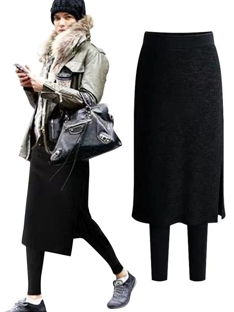 This innovative skirt comes with leggings, so you can easily create a trendy style with just one piece. ◎ The length covers your knees, so you can also cover up any body shape concerns around your legs and buttocks. The elastic waistband doesn't constrict, so you can wear it for long periods without feeling stressed. It's great not only for casual outings, but also as loungewear. The elastic waistband is wide, so you can tuck in your top to create a waistline and achieve a slimming effect. The hem has a deep side slit on one side, making it easy to move your legs. It's excellent for keeping out the cold and is gentle on pregnant women, so it's recommended as stylish maternity wear and for mommy coordination. ◎