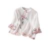 Retro Embroidered Floral Top Frog Button Ethnic Style Top Short Sleeved Shirts Spring/Summer