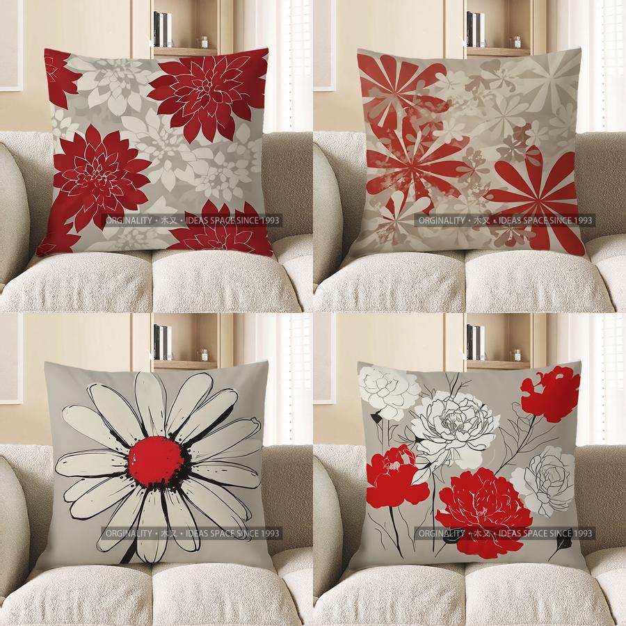 Home Decor Red & Gray Floral Pattern Decorative Pillow Cover Pattern Cushion Cover Suitable for Sofa Bedroom Car Pillow Cover