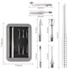 6 in 1 Nagel abgeschrägter Kopf Edelstahl Nagelhautschieber Nail Art Schleifpad Maniküre Stäbchen Werkzeug für Salonnägel Zubehör