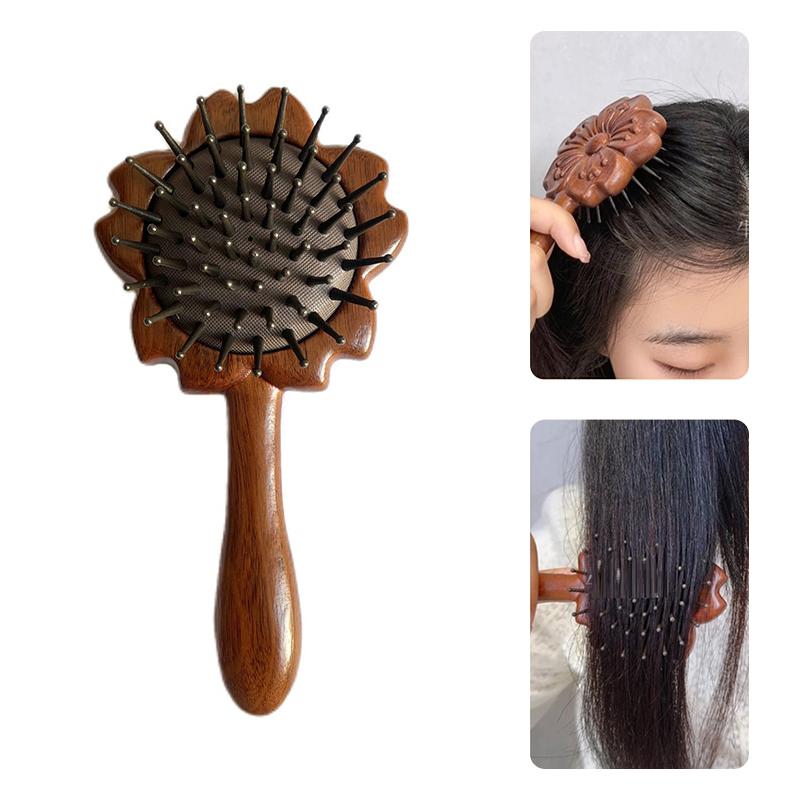 Flower Shape Sandalwood Scalp Massage Comb Meridian Comb Toothed Head Hair Comb Body Beautify Massage Gua Sha Scraping Care Comb