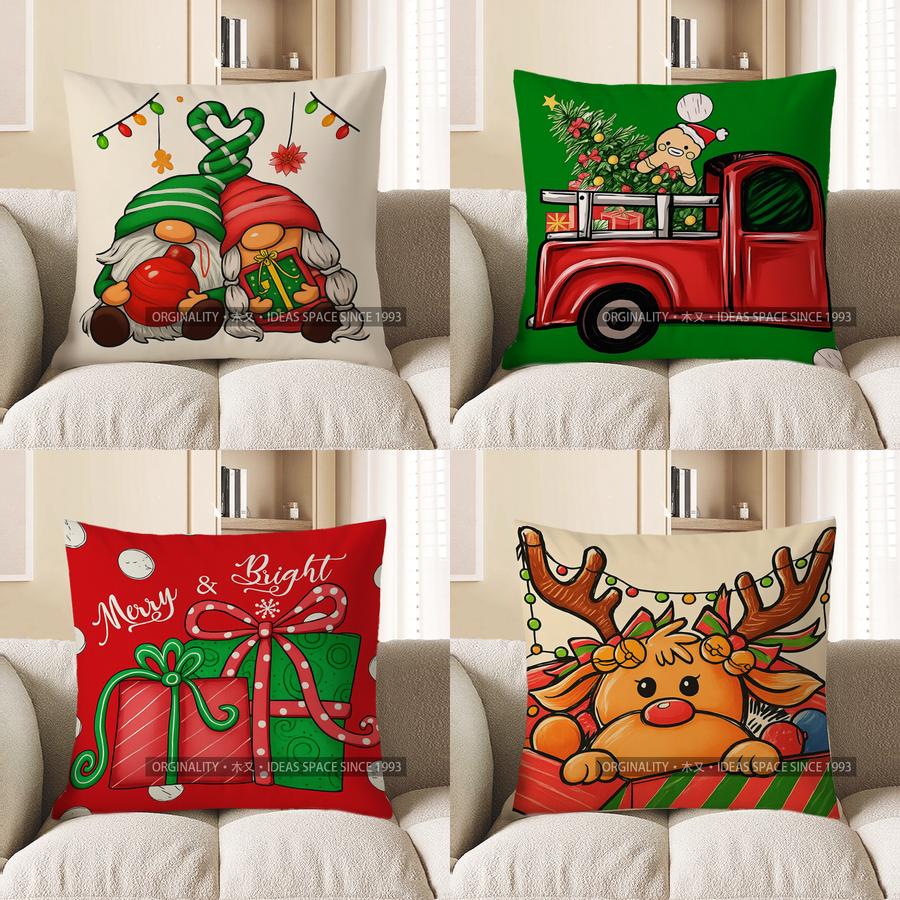Heimdeko Weihnachtsgnome mit Geschenken und Lichtern Kissenmuster Kissenbezug Geeignet für Sofa Schlafzimmer Auto Kissenbezug