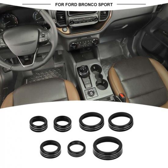 7pc Black Center Console Switch Knob Cover Trim Ring for Ford Bronco Sport +