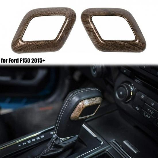 2pcs Gear Shifter Head Cover Frame Trim Bezel for Ford F150 2015- Wood Grain