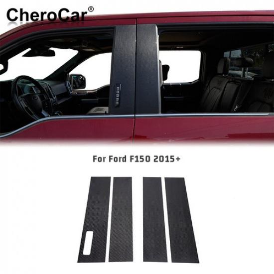 Black Carbon Fiber B Pillar Post Decal Trim Stickers for 2015-22 Ford F150 F-150