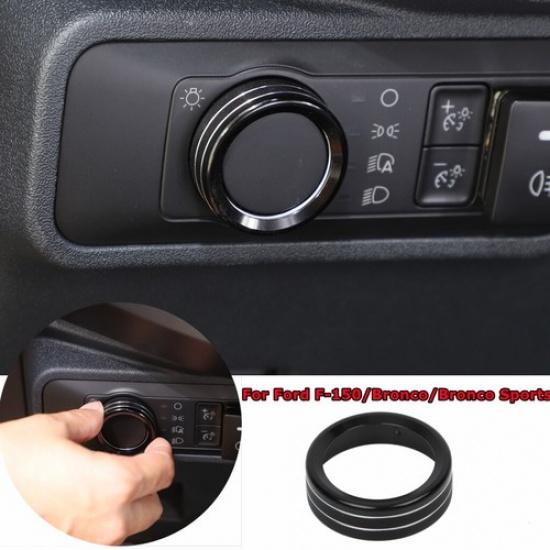 Headlight Switch Knob Cover Ring For Ford F150/Bronco/Bronco Sports + Black