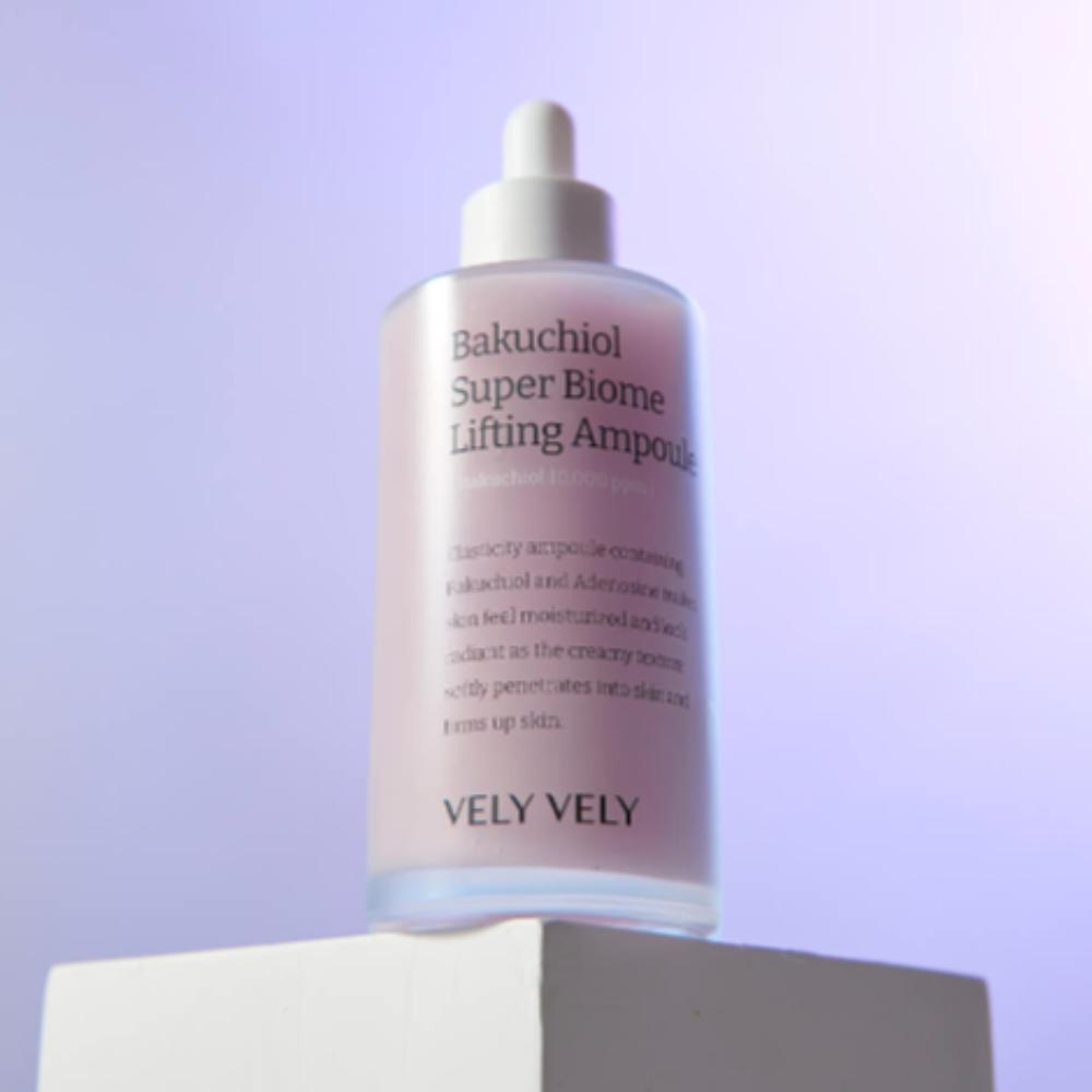 VELY VELY bakuchiol ampoule, super biome lifting ampoule, firming ampoule 100ml, elasticity care serum, retinol alternative ampoule, Korean anti-aging ampoule, daily lifting skincare.