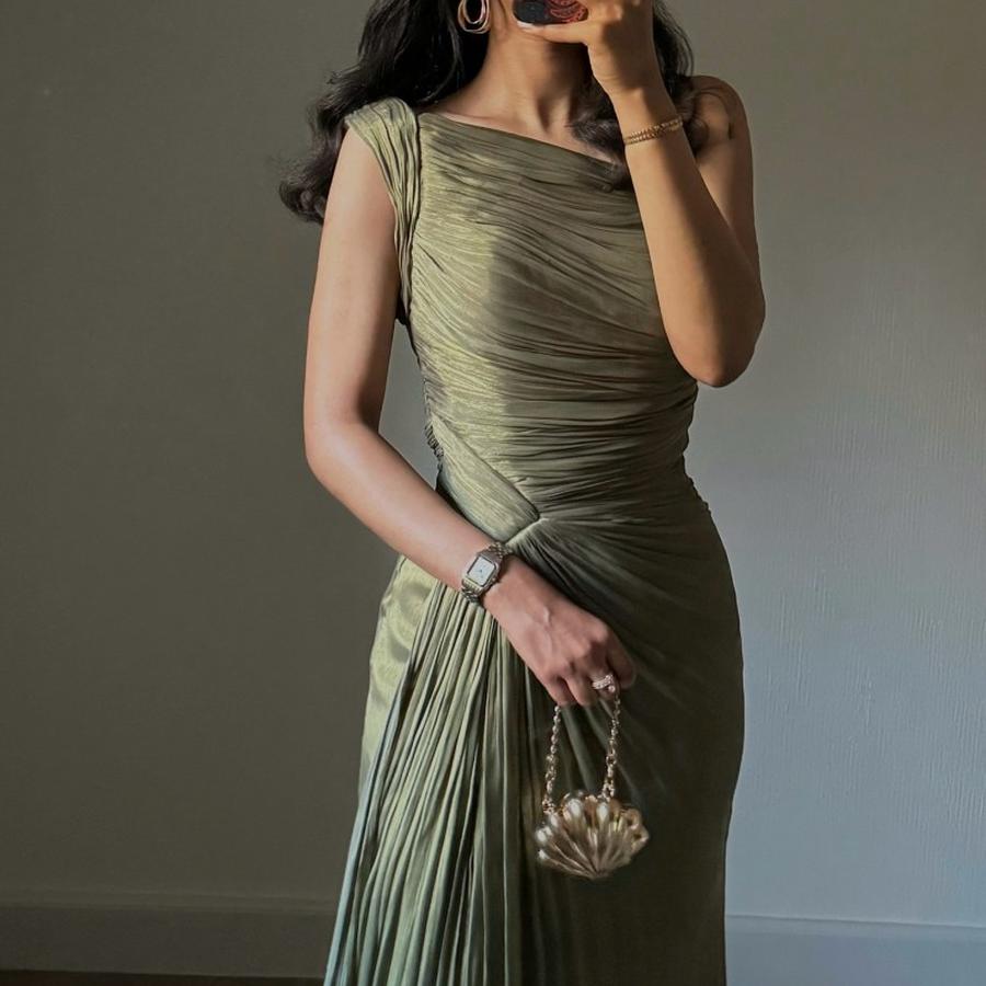 Herbst Damenkleider - Rüschen Plissee Schimmer Abendkleider