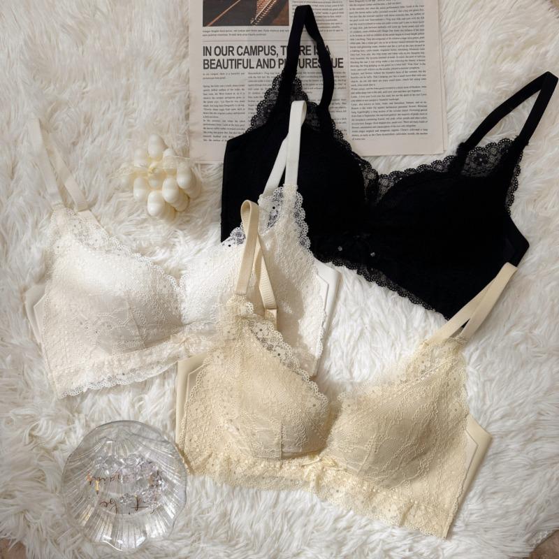 Underwear women's big breasts show small exquisite lace ultra-thin breathable hole cup gathered side closed no steel ring bra