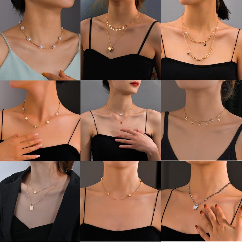 Personalisierter Scheiben-Liebesanhänger, mehrlagige Damen-Halskette Schlüsselbeinkette