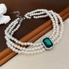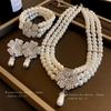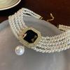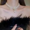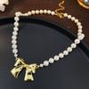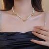 Koreanische Retro-Perlen-Diamant-Fransen-Halskette Internet-Berühmtheit Temperament Designgefühl Blume Schleife Schlüsselbeinkette Halskette weiblich