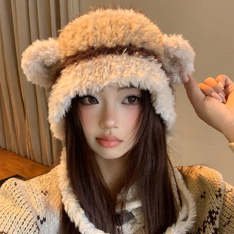 Cute plush Lei Feng hat women's season new thickened warm face small hat ear protection hat knitted hat