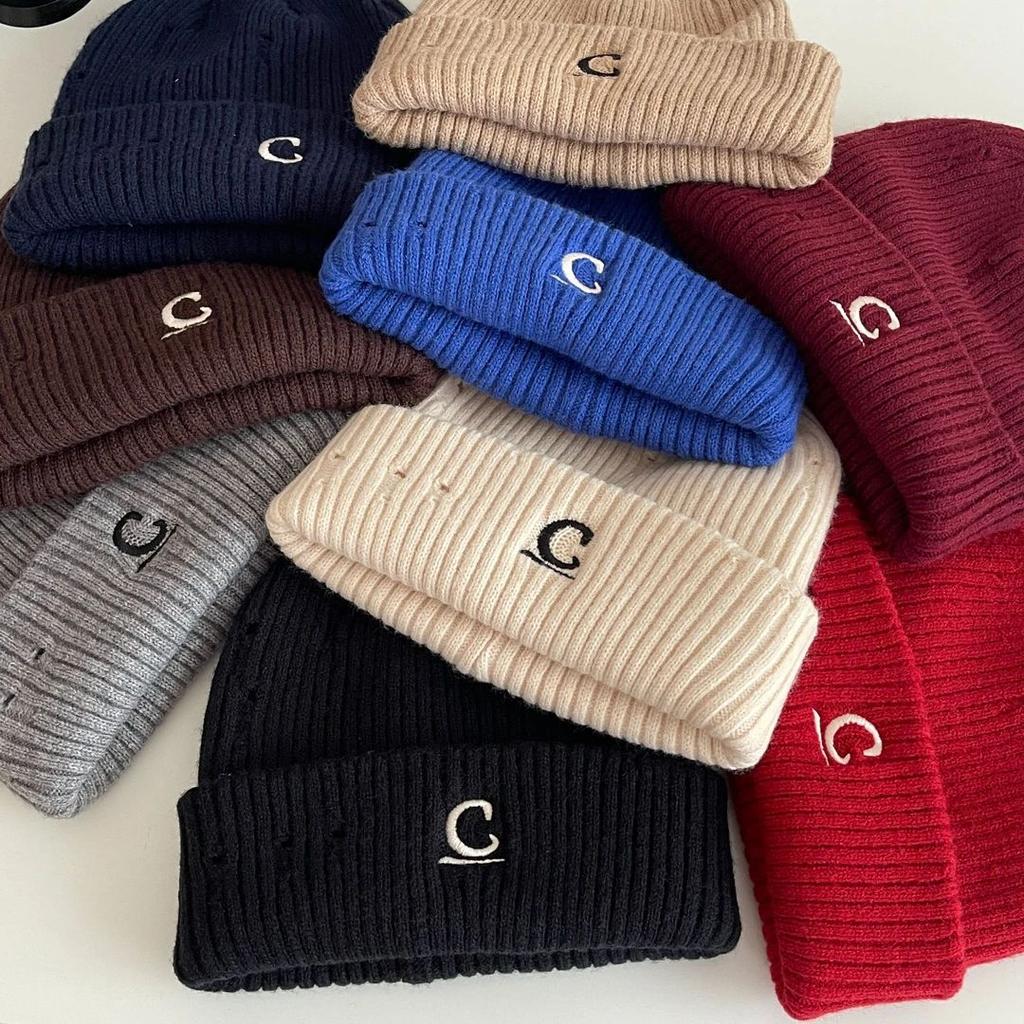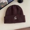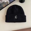 C-Buchstaben einfarbige Strickmütze Damen weich wachsartig verdickt warm Ohrenschutz Kältehut einfach vielseitig Wollmütze
