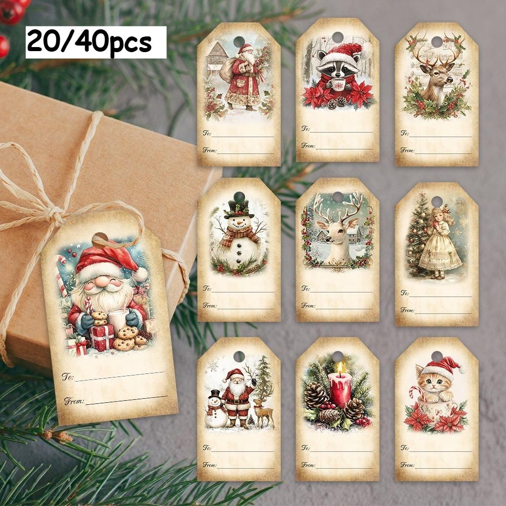 20/40 Stück Weihnachtsgeschenkanhänger-mit Weihnachtsmann, Schneemännern, Rentieren-für Geschenke, Karten, Dekorationen-Kompatibel-Perfekt für Weihnachten, Partydeko