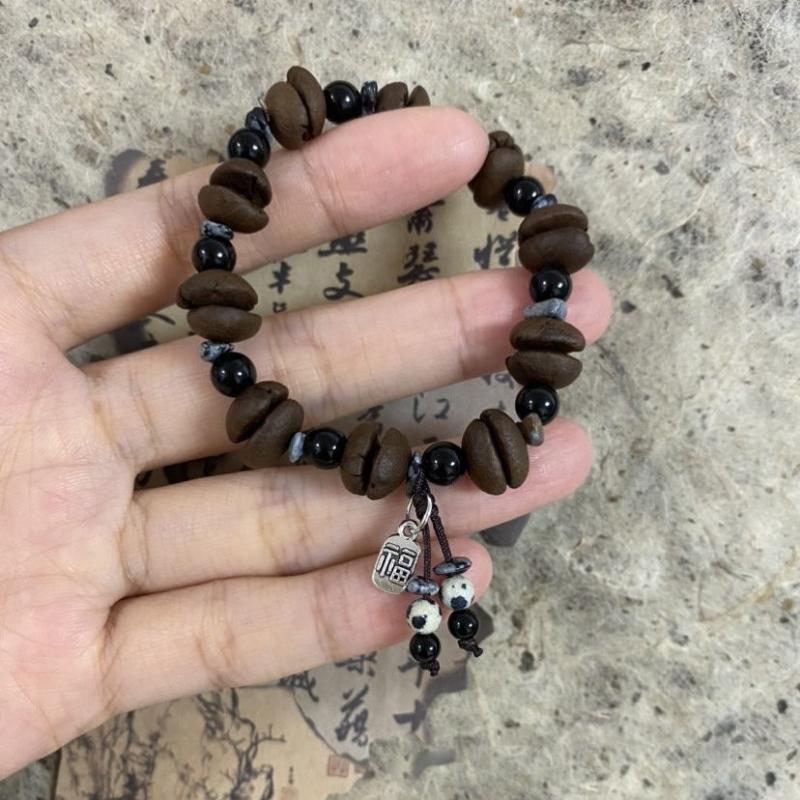Handmade Natural Coffee Bean Bracelet Elastic Coconut Chip Wood Chip Hand Decoration Bracelet
