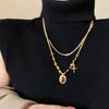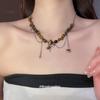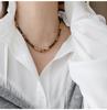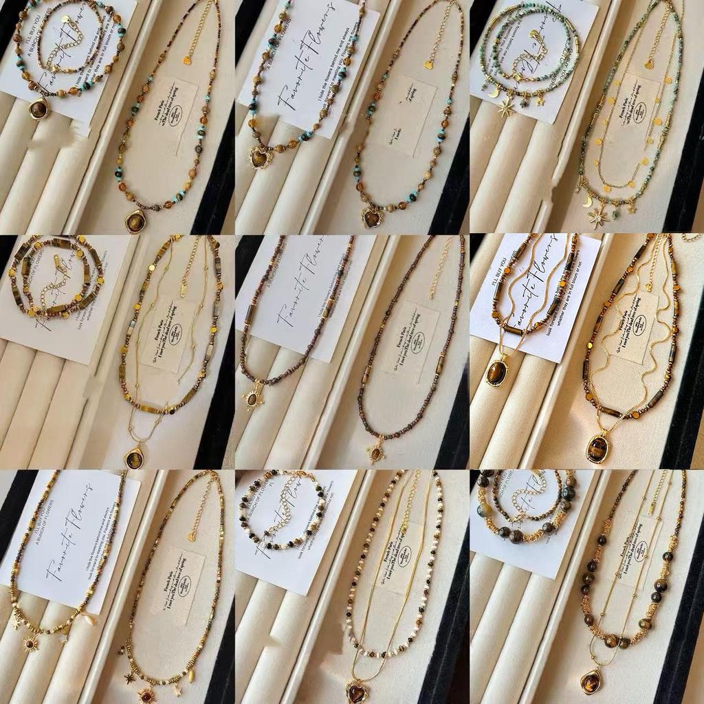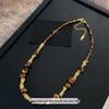 18k vergoldete Tigerauge Perlenanhänger Halskette - Retro Schlüsselbeinkette für Herbst/Winter.