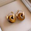 Silbernadel Tigerauge Runde Geometrische Anhängerohrringe - Retro Millard Stil Ohrstecker mit Einzigartigem Nischen-Design