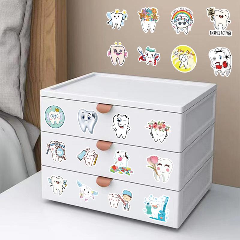 50 Stück Zahn-Sticker Cartoon-Dekoration Zahnförmiger Sticker Zahnmedizin Zahnklinik Aufkleber Vorschulbedarf
