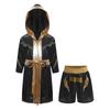 Kinder Boxkostüm Set Satin Kapuzenrobe mit Gürtel & Paillettenshorts Metallischer Besatz Buchstabenaufdruck