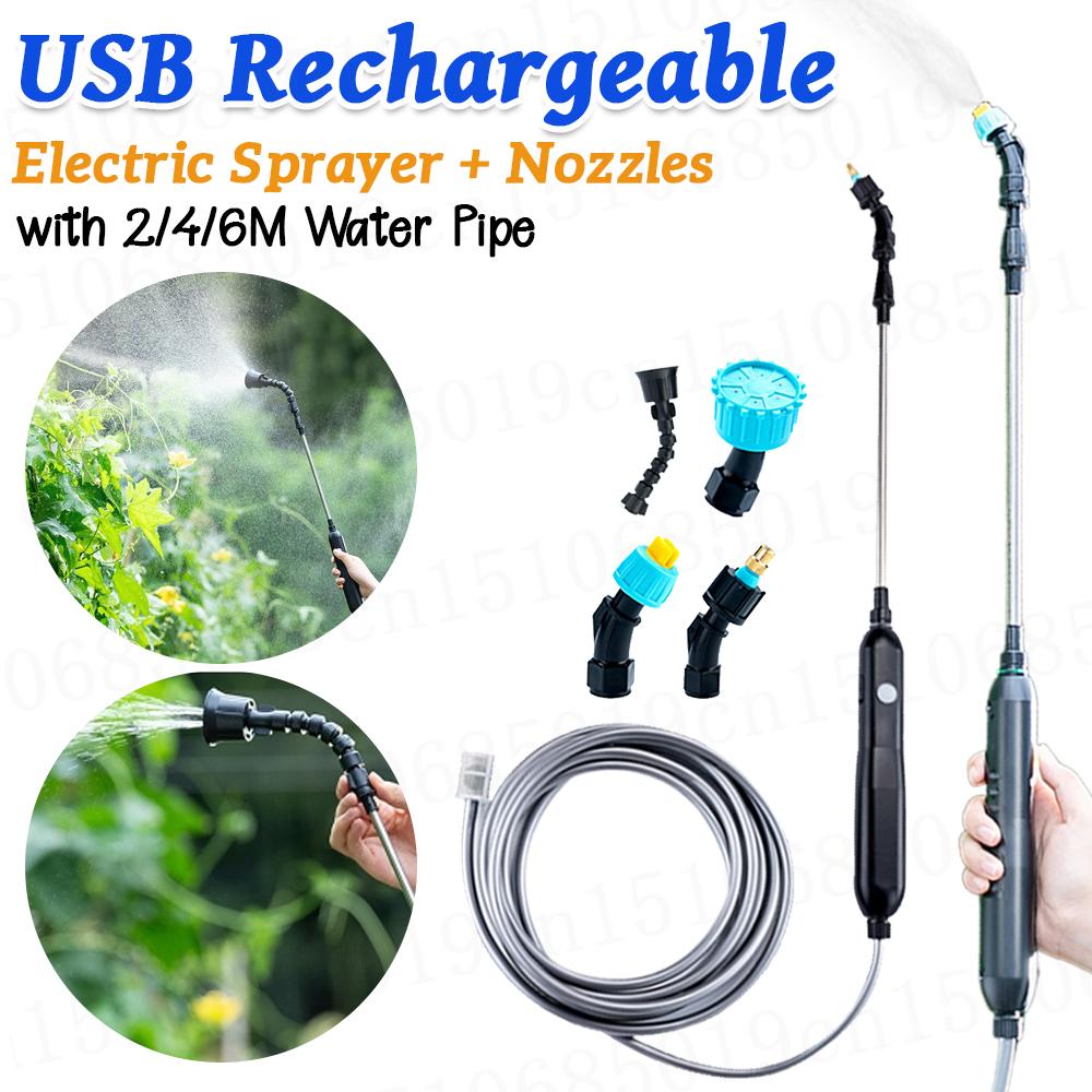 Tragbarer Elektrischer Gartensprüher 2/4/6M USB Wiederaufladbar Teleskopgriff Elektrischer Sprüher mit 2/4 Düsen für Hofpflanzen