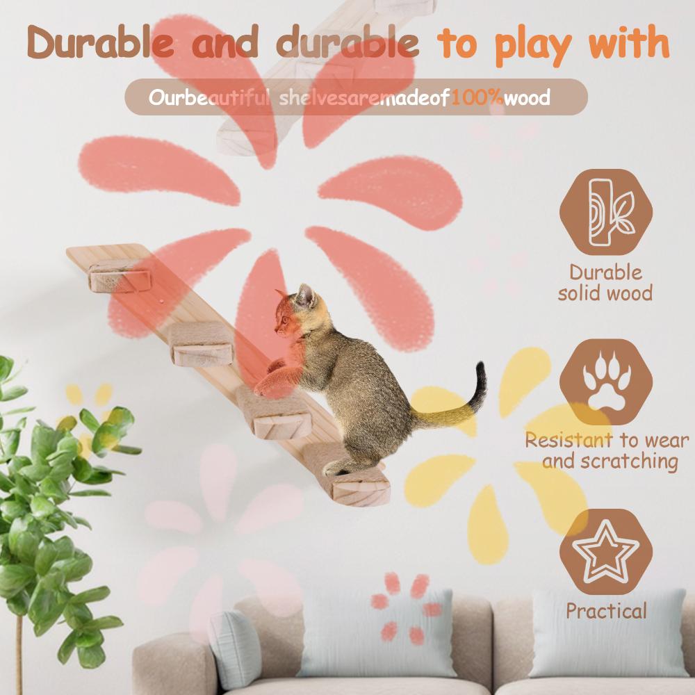 Katzenwandstufen Holz Katzenkletterleiter Wandmontierter Katzenkletterbaum für Katzen Sitzregale