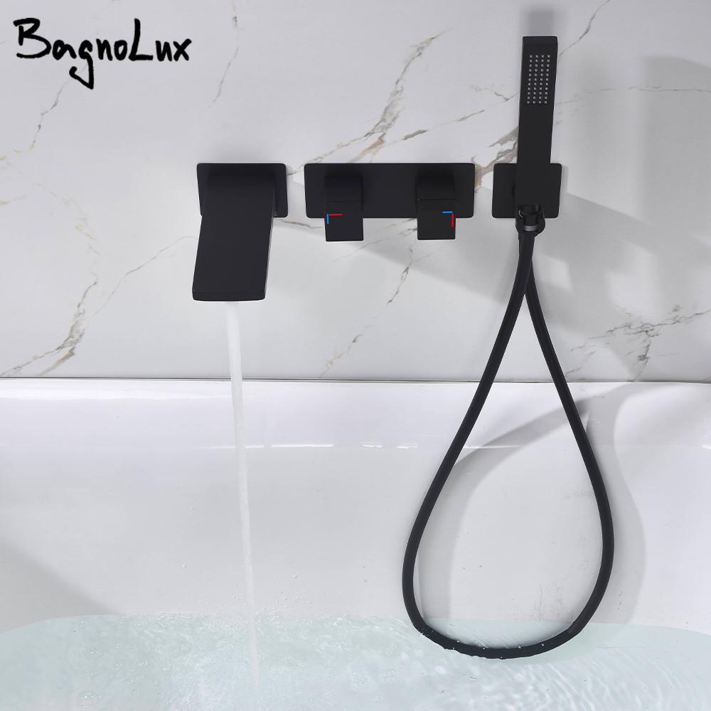 Black Wall Mounted Bathroom Faucet with Hand Shower Single Handle Spout Mixer Tap for Bathtub Modern Stylish Bath Faucets