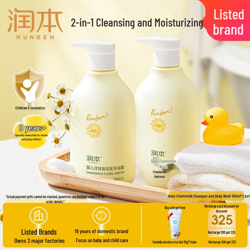 Runben Baby Chamomile 2-in-1 Wash & Shampoo Twin Pack