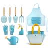 SET INCLUDES: 3 different sets for different needs, 4pcs set, 6 pcs set and 9 pcs set;9pcs set kid gardening set includes 3 shovels, 1 rake, 2 watering cans, 1 gardening gloves, 1 apron, 1 tote bag.