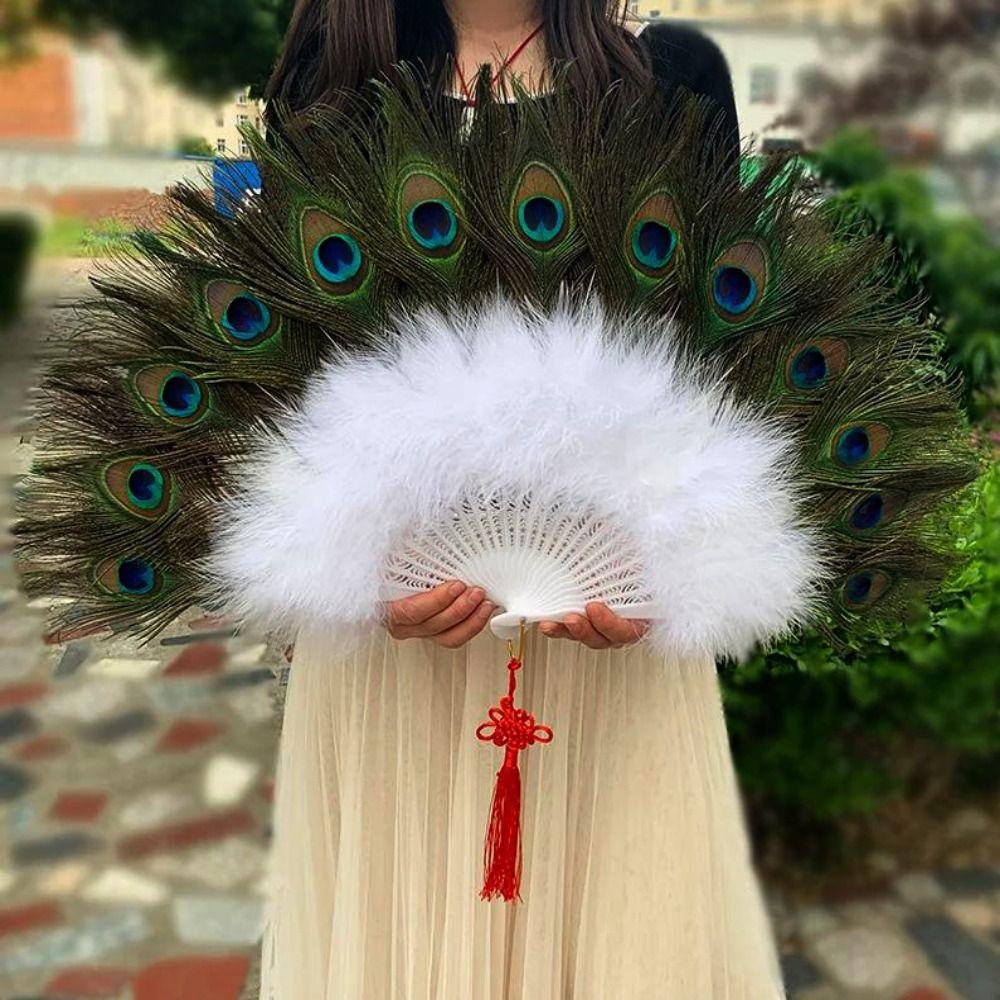 1 Stück 28 Knochen Großer Pfauenfedernfächer Cheongsam Show Live Square Dance Aufführung Fell Faltfächer