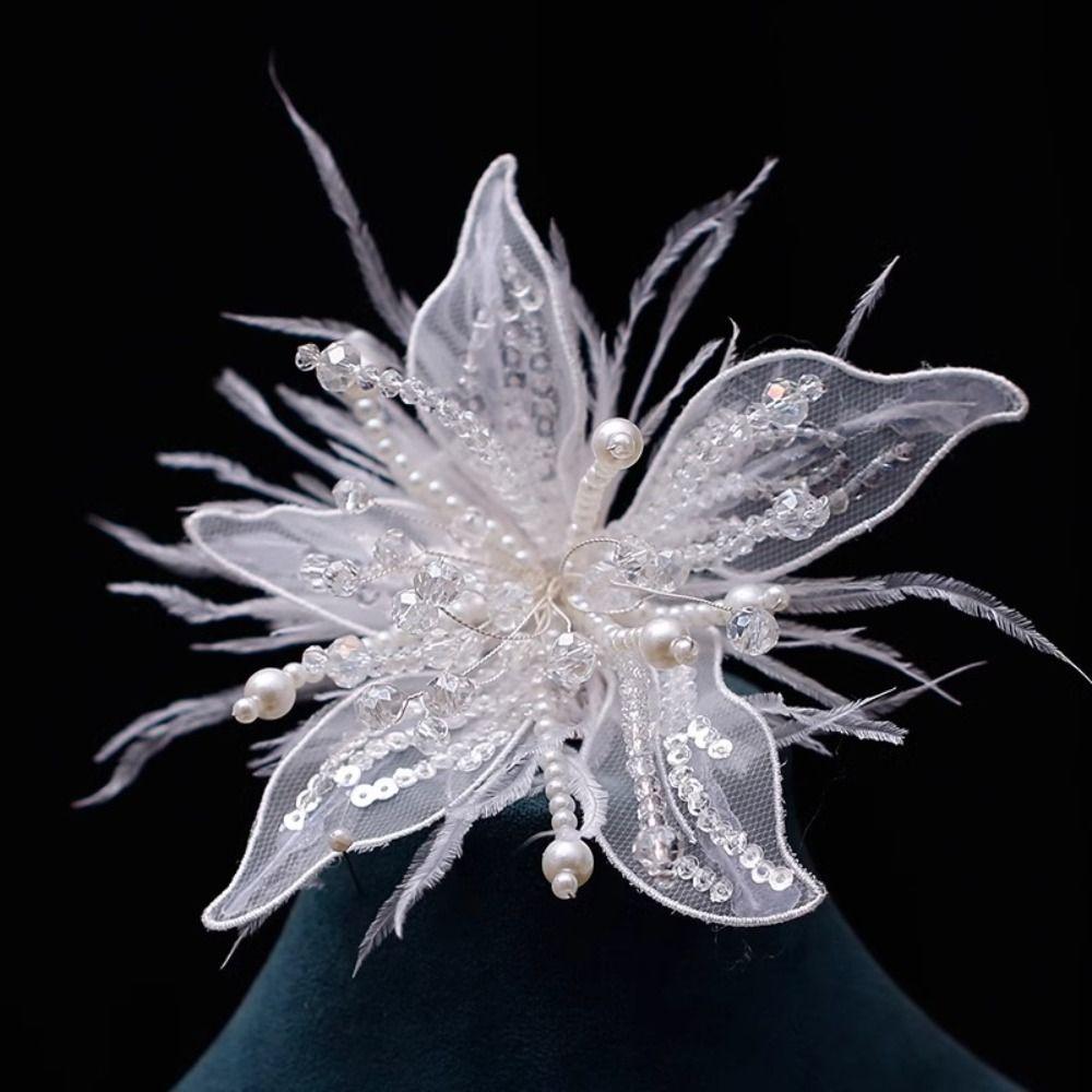 Crystal Flower 3D Organza Flower Patch Feather Pearl Embroidery Patch Dress Decoration