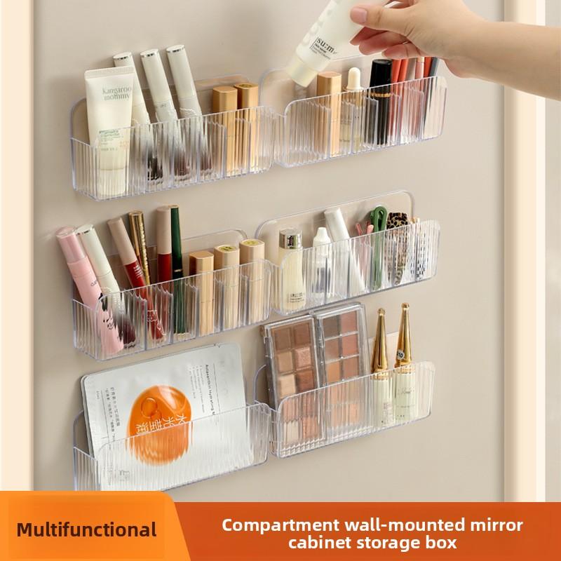 Mirror Cabinet Storage Box, No Need for Drilling, Wall-mounted with Compartments, Bathroom, Cosmetics, Lipstick and Mask Storage Rack