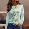 Damen T-Shirt 3D Druck Farbverlauf Blumendruck Mode Langarm Rundhals Regulär Oberteile Feiertags-Wochenende Frühling und Herbst