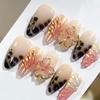 24 STÜCKE Französische Geprägte 3D Aufdrücknägel Gel 3D Blume Goldperlen Mandelform Tabletten Falsche Nägel Süßer Niedlicher Stil für Frauen Mädchen