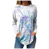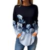 Damen T-Shirt mit 3D-Blattdruck, modisch, langärmlig, Rundhalsausschnitt, normale Oberteile, Feiertagswochenende, Frühling und Herbst
